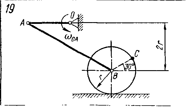 Решение задачи К4 Вариант 19 из решебника по теоретической механике Яблонский А.А. 1978 г., на тему: К4 Определение скоростей точек твердого чела при плоском движении (стр. 93).