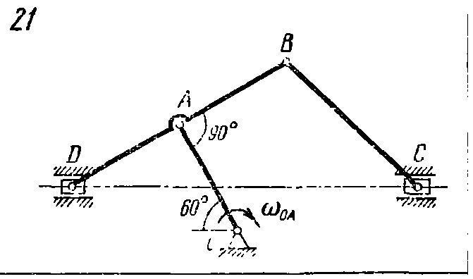 Решение задачи К4 Вариант 21 из решебника по теоретической механике Яблонский А.А. 1978 г., на тему: К4 Определение скоростей точек твердого чела при плоском движении (стр. 93).