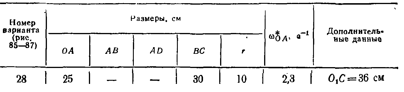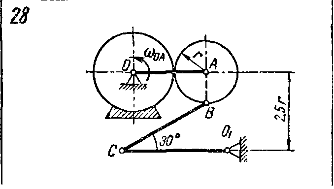 Решение задачи К4 Вариант 28 из решебника по теоретической механике Яблонский А.А. 1978 г., на тему: К4 Определение скоростей точек твердого чела при пло­ском движении (стр. 93).