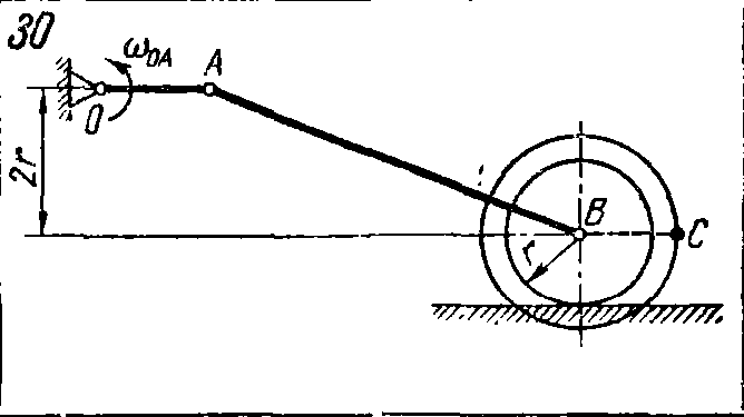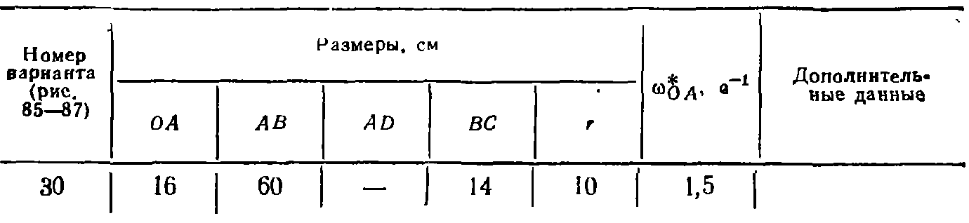 Решение задачи К4 Вариант 30 из решебника по теоретической механике Яблонский А.А. 1978 г., на тему: К4 Определение скоростей точек твердого чела при плоском движении (стр. 93).