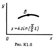 Точка B движется в плоскости xy (рис. К1.0-К1.9, табл. К1; траектория точки на рисунках показана условно). Закон движения точки задан уравнениями: x = f1(t), y = f2(t), где x и y выражены в сантиметрах, t – в секундах. Найти уравнение траектории; для момента времени t1 = 1 с определить скорость и ускорение точки, а также ее касательное ускорение и радиус кривизны в соответствующей точке траектории. Зависимость x = f1(t) указана непосредственно на рисунках, а зависимость y = f2(t) дана в табл. К1 (для рис. 0-2 в столбце 2, для рис. 3-6 в столбце 3, для рис. 7-9 в столбце 4).