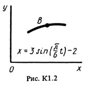 Точка B движется в плоскости xy (рис. К1.0-К1.9, табл. К1; траектория точки на рисунках показана условно). Закон движения точки задан уравнениями: x = f1(t), y = f2(t), где x и y выражены в сантиметрах, t – в секундах. Найти уравнение траектории; для момента времени t1 = 1 с определить скорость и ускорение точки, а также ее касательное ускорение и радиус кривизны в соответствующей точке траектории. Зависимость x = f1(t) указана непосредственно на рисунках, а зависимость y = f2(t) дана в табл. К1 (для рис. 0-2 в столбце 2, для рис. 3-6 в столбце 3, для рис. 7-9 в столбце 4).