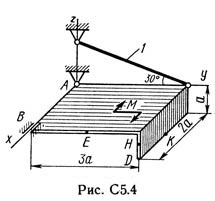 Две однородные прямоугольные тонкие плиты жестко соединены (сварены) под прямым углом друг к другу и закреплены сферическим шарниром (или подпятником) в точке А, цилиндрическим шарниром (подшипником) в точке В и невесомым стержнем 1 (рис. С5.0 — С5.7) или же двумя подшипниками в точках A и В и двумя невесомыми стержнями 1 и 2 (рис. С5.8, С5.9); все стержни прикреплены к плитам и к неподвижным опорам шарнирами.