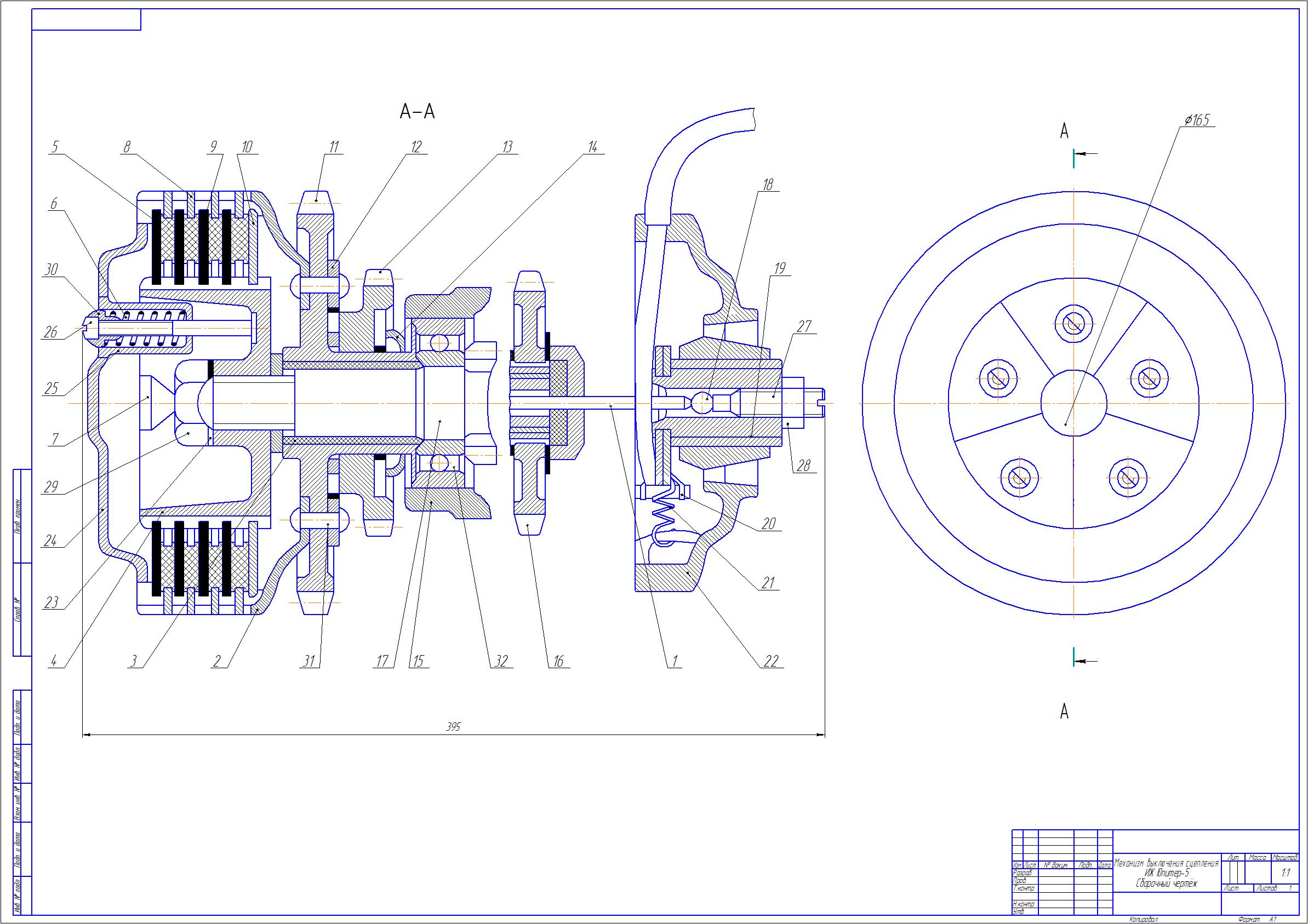 Механизм выключения сцепления ИЖ Юпитер-5. Сборочный чертёж на формате А1