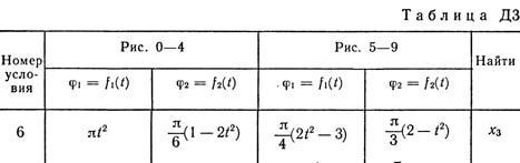 При движении грузов угол φ1 = ∠A2C3D1изменяется по закону φ1 = f1(t), а угол φ2 = ∠A2C3D2 — по закону φ2 = f2(t). В табл. ДЗ эти зависимости даны отдельно для рис. 0—4 и 5—9, где φ выражено в радианах, t — в секундах. Считая грузы материальными точками и пренебрегая всеми сопротивлениями, определить закон изменения со временем величины, указанной в таблице в столбце «Найти», т. е. x3 = t3(t) и N = f(t), где x3 — координата центра C3 плиты (зависимость x3 = f3(t) определяет закон движения плиты), N — полная нормальная реакция направляющих.