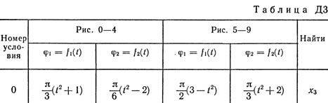 При движении грузов угол φ1 = ∠A2C3D1изменяется по закону φ1 = f1(t), а угол φ2 = ∠A2C3D2 — по закону φ2 = f2(t). В табл. ДЗ эти зависимости даны отдельно для рис. 0—4 и 5—9, где φ выражено в радианах, t — в секундах. Считая грузы материальными точками и пренебрегая всеми сопротивлениями, определить закон изменения со временем величины, указанной в таблице в столбце «Найти», т. е. x3 = t3(t) и N = f(t), где x3 — координата центра C3 плиты (зависимость x3 = f3(t) определяет закон движения плиты), N — полная нормальная реакция направляющих.