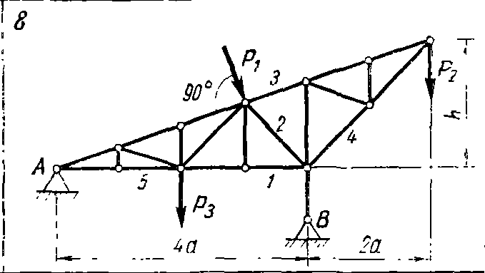 Решение задачи С3 вариант 8 из решебника по теоретической механике Яблонский А.А. 1978 г., на тему: СЗ Определение усилии в стержнях плоской фермы способом Риттера (стр. 17).