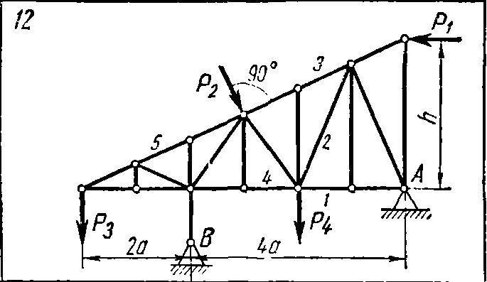 Решение задачи С3 вариант 12 из решебника по теоретической механике Яблонский А.А. 1978 г., на тему: СЗ Определение усилии в стержнях плоской фермы способом Риттера (стр. 17).