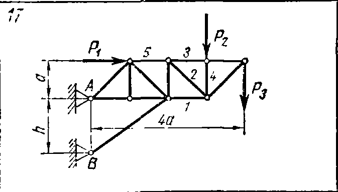 Решение задачи С3 вариант 17 из решебника по теоретической механике Яблонский А.А. 1978 г., на тему: СЗ Определение усилии в стержнях плоской фермы способом Риттера (стр. 17).