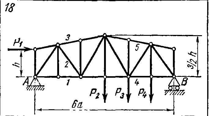 Решение задачи С3 вариант 18 из решебника по теоретической механике Яблонский А.А. 1978 г., на тему: СЗ Определение усилии в стержнях плоской фермы спо­собом Риттера (стр. 17).