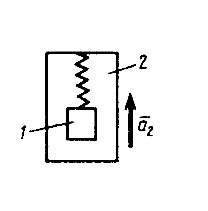 Кабина 2 лифта движется вверх с ускоре­нием а2 = 0,5g. Определить силу натяжения пружины, если подвешенный груз 1 весом 100Н находится в состоянии относительною покоя. (Ответ 150)