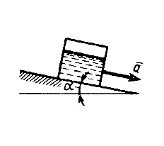 С каким ускорением а должен двигаться сосуд, наполненный водой, чтобы свободная поверхность воды стала параллельной наклон­ной плоскости, если угол наклона плоскости ? = 20° ? (Ответ 3,36)
