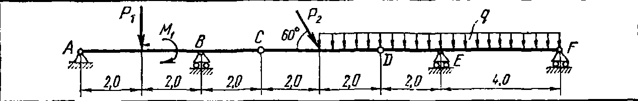 Решение задачи С4 вариант 1 из решебника к сборнику по теоретической механике Яблонский А.А. 1978 г., на тему: С4 Определение реакций опор составной балки (стр. 24).