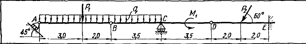 Решение задачи С4 вариант 16 из решебника к сборнику по теоретической механике Яблонский А.А. 1978 г., на тему: С4 Определение реакций опор составной балки (стр. 24).