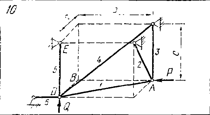 Решение задачи С8 вариант 10 из решебника к сборнику по теоретической механике Яблонский А.А. 1978 г., II. Система сил, не лежащих в одной плоскости. Система сходящихся сил: на тему: С8 Определение усилий в стержнях пространственной конструкции (стр. 48).