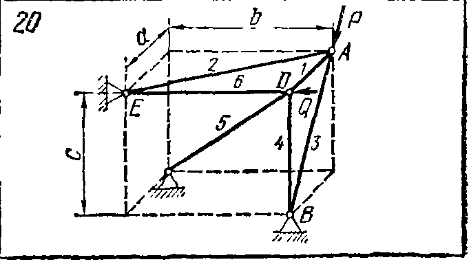 Решение задачи С8 вариант 20 из решебника к сборнику по теоретической механике Яблонский А.А. 1978 г., II. Система сил, не лежащих в одной плоскости. Система сходящихся сил: на тему: С8 Определение усилий в стержнях пространственной конструкции (стр. 48).