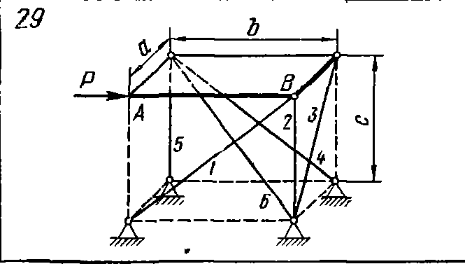 Решение задачи С11 вариант 29 из решебника к сборнику по теоретической механике Яблонский А.А. 1978 г., II. Система сил, не лежащих в одной плоскости. Система произвольно расположенных сил: на тему: С11 Определение реакций стержней, поддерживающих прямоугольною плиту (стр. 64).