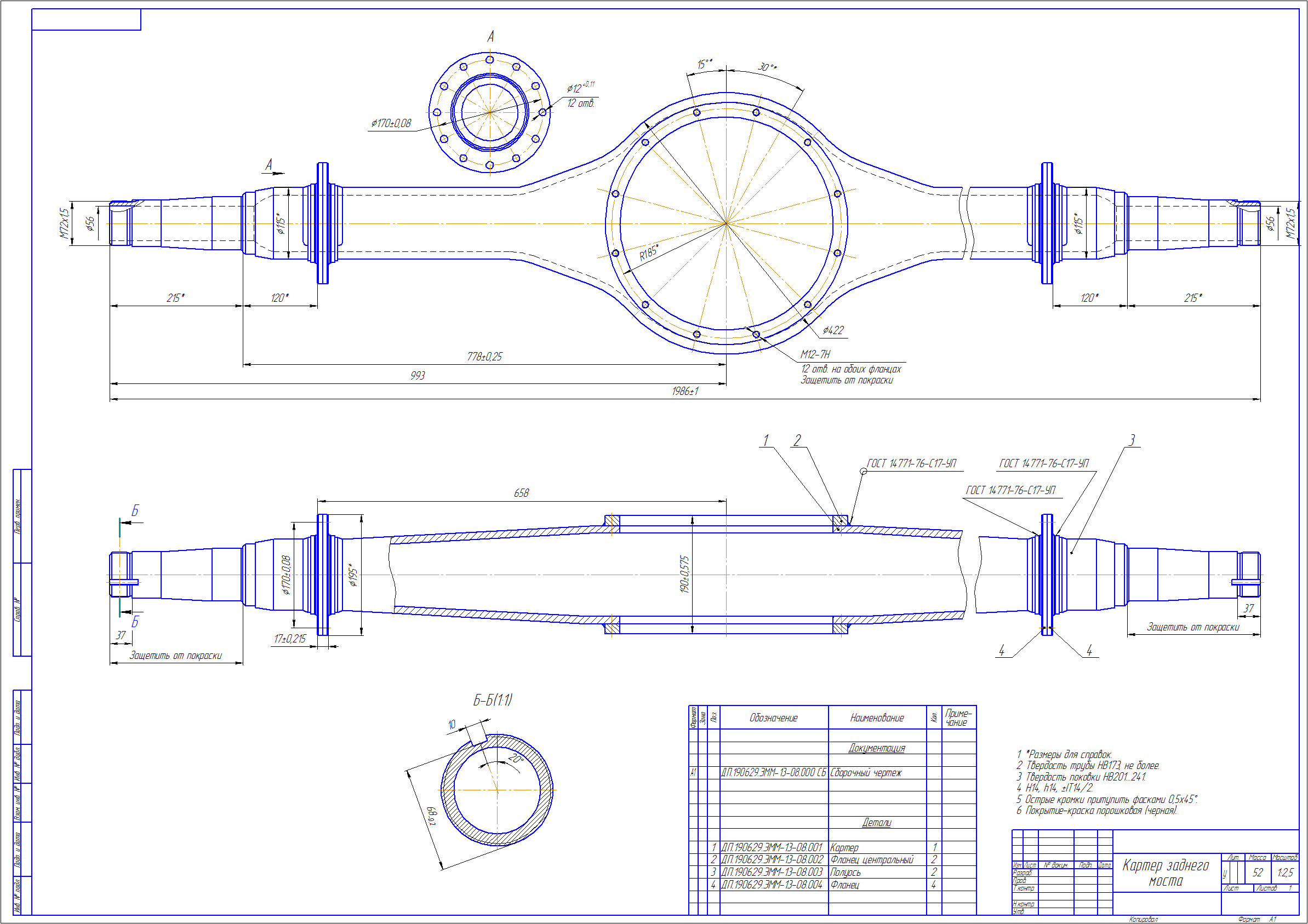 Чертеж Редуктор заднего моста автомобиля ГАЗ-53 + чертеж картера заднего моста в сборе на формате А1