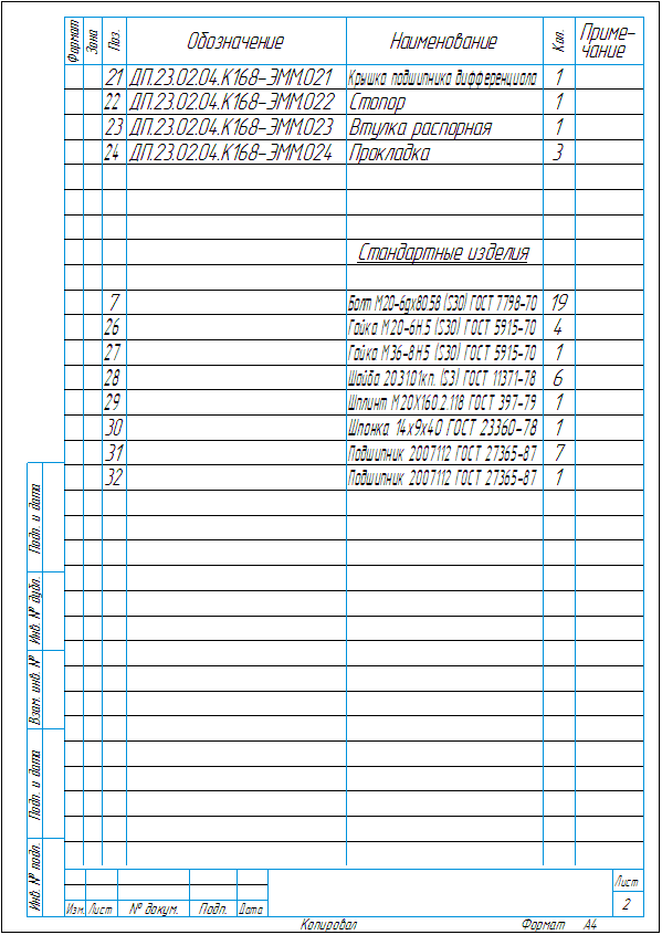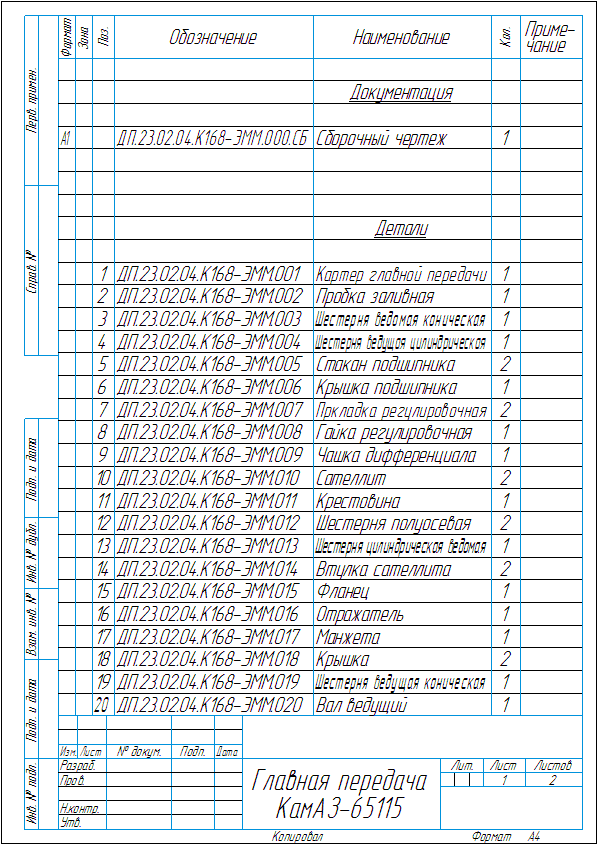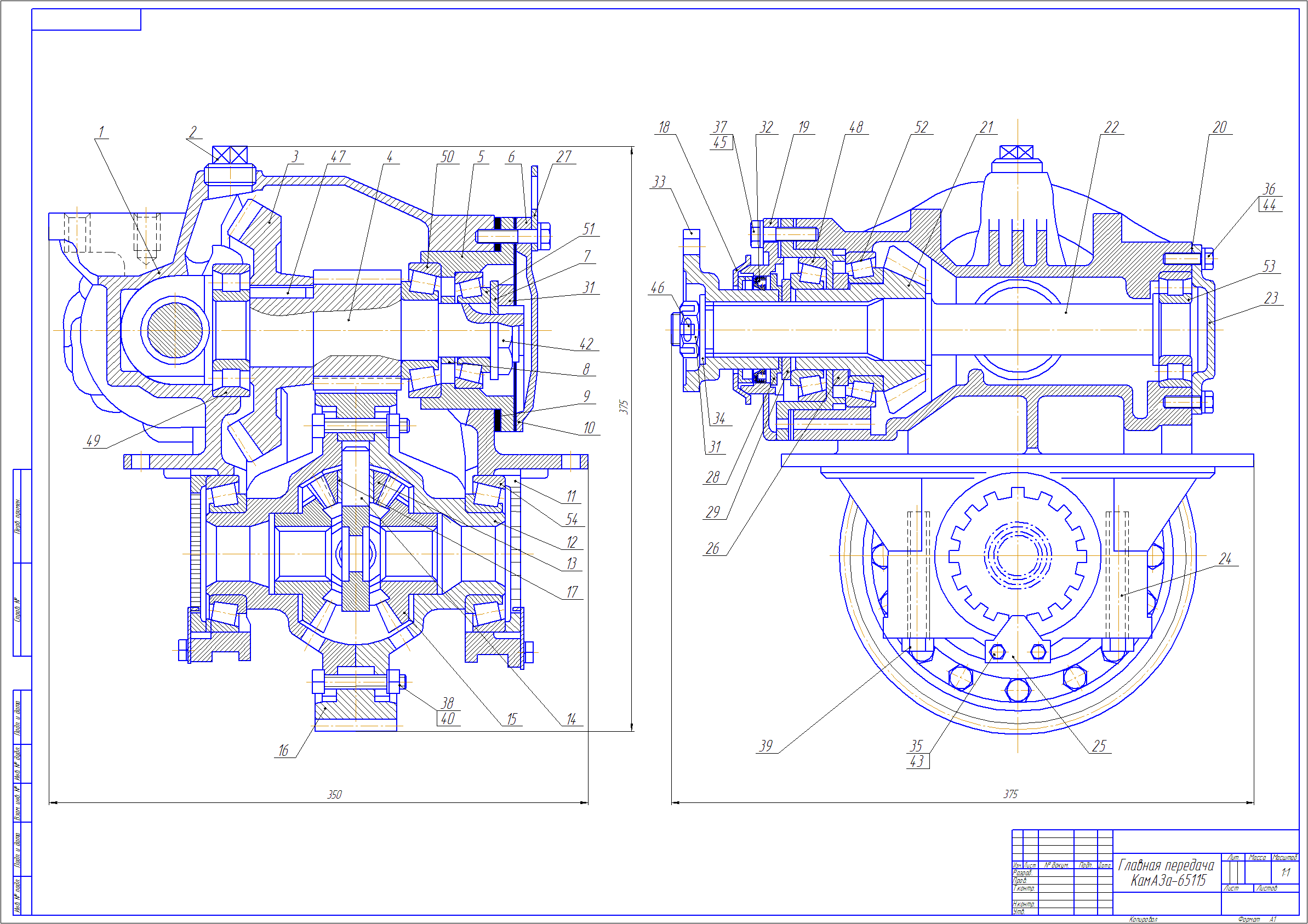 Чертеж Главная передача автомобиля КАМАЗ-65115 и спецификация