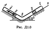 Груз D массой m, получив в точке A начальную скорость v0 движется в изогнутой трубе AВС, расположенной в вертикальной плоскости; участки трубы или оба наклонные, или один горизонтальный, а другой наклонный (рис. Д1.0 — Д1.9, табл. Д1).