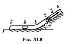 Груз D массой m, получив в точке A начальную скорость v0 движется в изогнутой трубе AВС, расположенной в вертикальной плоскости; участки трубы или оба наклонные, или один горизонтальный, а другой наклонный (рис. Д1.0 — Д1.9, табл. Д1).