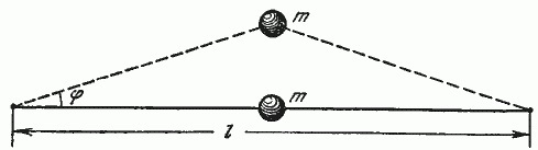 35. Закрепленная на концах струна растянута с силой f. К середине струны прикреплен точечный груз массы m (рисунок). Определить период малых колебаний прикрепленного груза. Массой струны пренебречь; силу тяжести не учитывать.