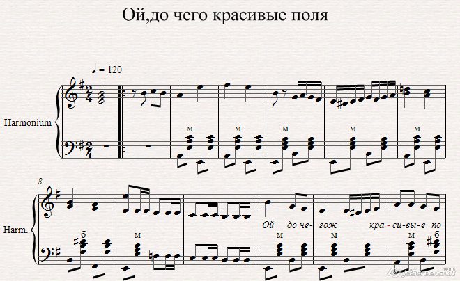 ноты для гармони , народная песня
