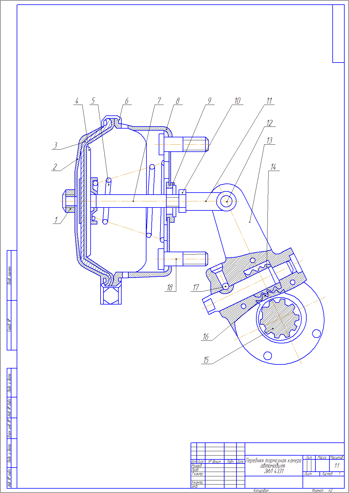 Тормозная камера автомобиля ЗИЛ-4331. Сборочный чертеж. Спецификация.