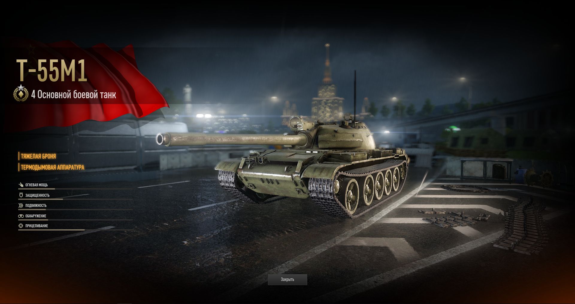 - премиумный ОБТ 4-го уровня Т-55М1;