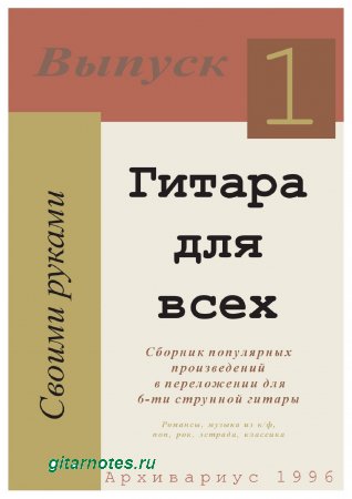 Название сборника говорит само за себя — Гитара для всех. Популярные пьесы (музыка и песни из кинофильмов, поп, рок музыка, эстрадные произведения) И все это в одном сборнике — гитара для всех. Вы не найдете здесь классические произведения Карулли и Сора, для них существуют другие сборники