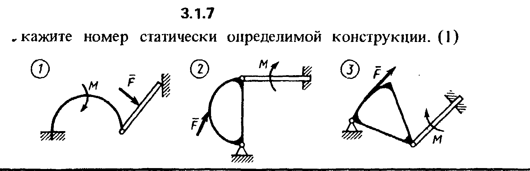 3.1.7 Укажите номер статически определимой конструкции.