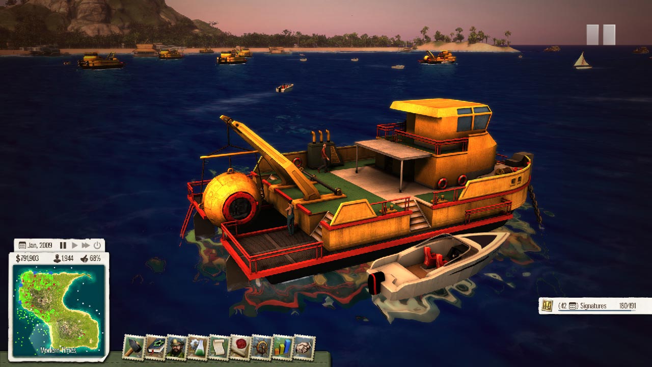Организуйте и координируйте транспортное сообщение с плавучим хозяйством, таким как фермы устриц и водорослей, постройте приливные электростанции, как экологически чистую альтернативу ядерной энергии, создайте потрясающие плавучие апартаменты, если на вашем острове кончится свободное место. Запустите военные субмарины, чтобы поддержать ваш флот или создайте экзотическую батисферу для привлечения туристов!