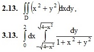 1. Представить двойной интеграл в виде повторного интеграла с внешним интегрированием по х и внешним интегрированием по y, если область D задана указанными линиями.