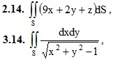 2. Вычислить поверхностный интеграл первого рода по поверхности S, где S – часть плоскости (p), отсеченная координатными плоскостями.