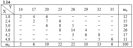 Дана таблица распределения 100 заводов по производственным средствам X(тыс. ден. ед.) и по суточной выработке Y(т). Известно, что между X и Y существует линейная корреляционная зависимость. Требуется: