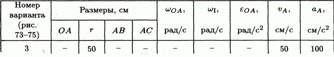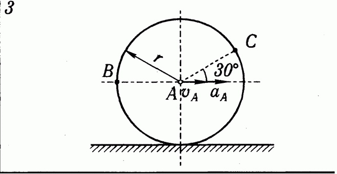 Решение задачи К5 Вариант 3 из решебника по теоретической механике Яблонский А.А. 1978 г., на тему: К5 Определение скоростей и ускорении точек твердого тела при плоском движении (стр. 99).