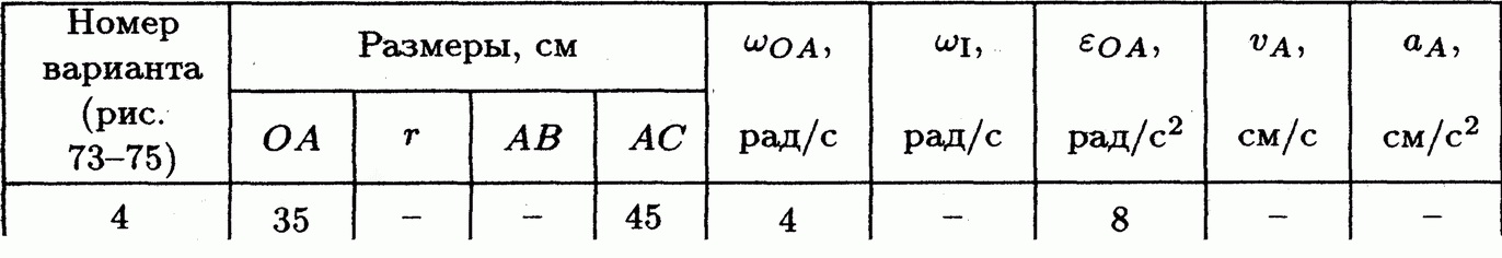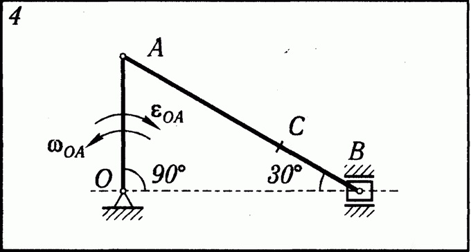 Решение задачи К5 Вариант 4 из решебника по теоретической механике Яблонский А.А. 1978 г., на тему: К5 Определение скоростей и ускорении точек твердого тела при плоском движении (стр. 99).