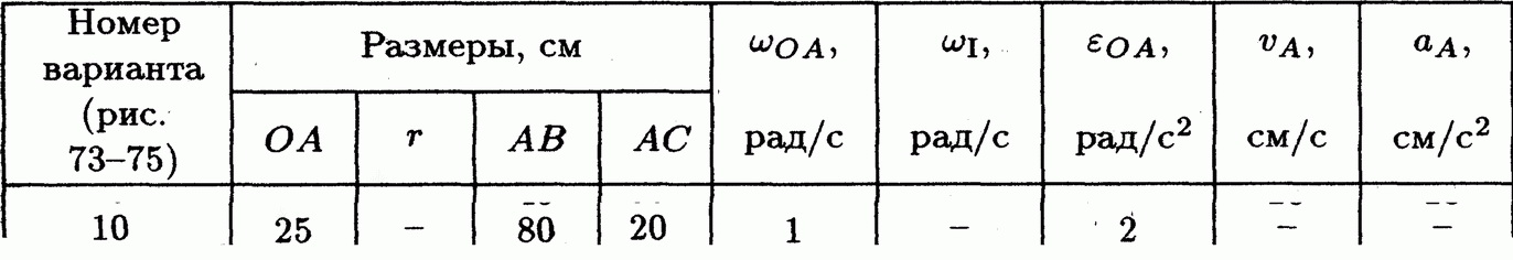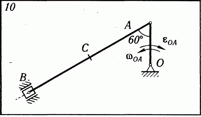 Решение задачи К5 Вариант 10 из решебника по теоретической механике Яблонский А.А. 1978 г., на тему: К5 Определение скоростей и ускорении точек твердого тела при плоском движении (стр. 99).
