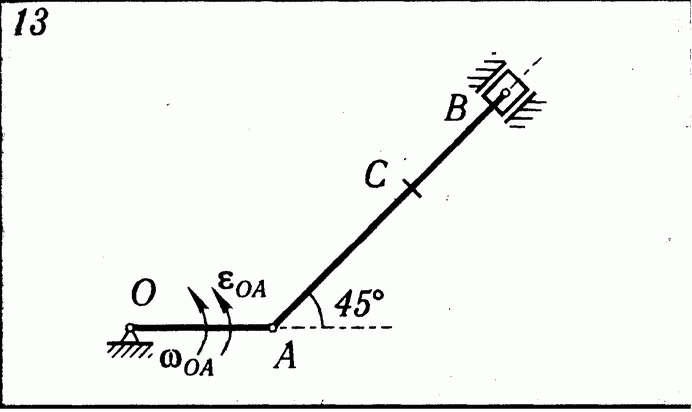 Решение задачи К5 Вариант 13 из решебника по теоретической механике Яблонский А.А. 1978 г., на тему: К5 Определение скоростей и ускорении точек твердого тела при плоском движении (стр. 99).