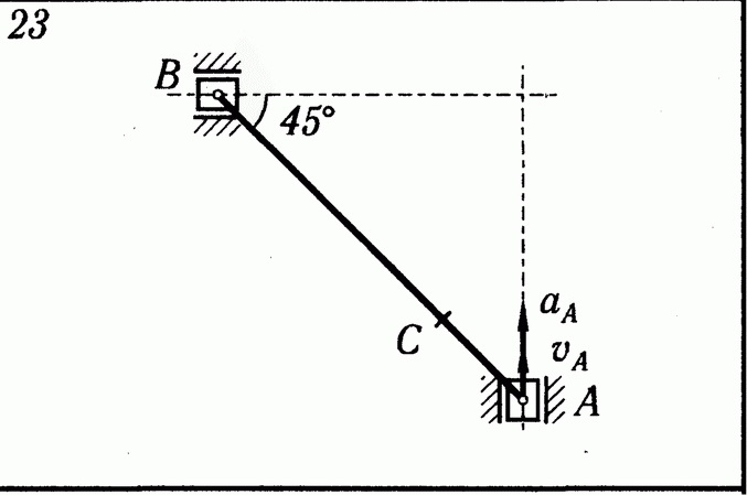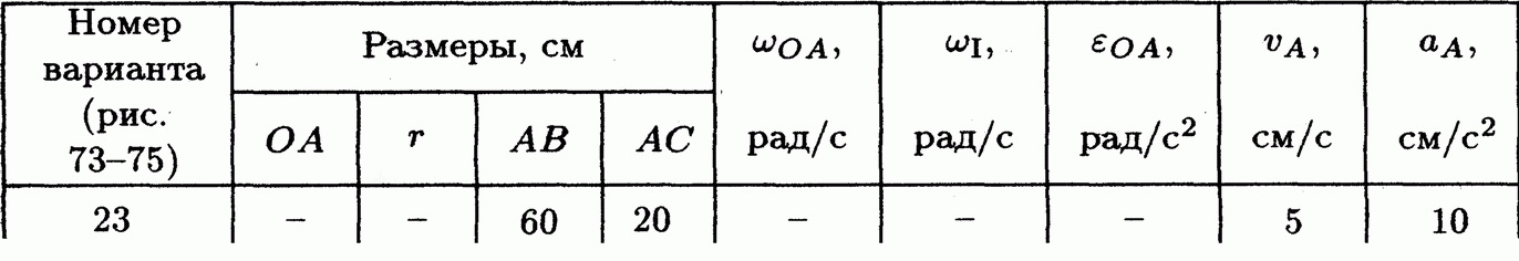 Решение задачи К5 Вариант 23 из решебника по теоретической механике Яблонский А.А. 1978 г., на тему: К5 Определение скоростей и ускорении точек твердого тела при плоском движении (стр. 99).