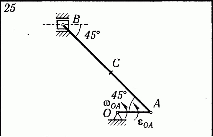 Решение задачи К5 Вариант 25 из решебника по теоретической механике Яблонский А.А. 1978 г., на тему: К5 Определение скоростей и ускорении точек твердого тела при плоском движении (стр. 99).
