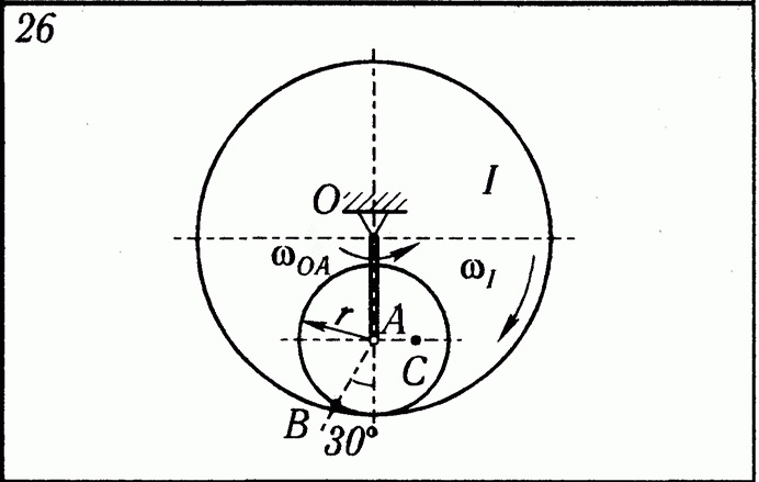 Решение задачи К5 Вариант 26 из решебника по теоретической механике Яблонский А.А. 1978 г., на тему: К5 Определение скоростей и ускорении точек твердого тела при плоском движении (стр. 99).