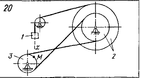 Решение задачи К3 Вариант 20 из решебника по теоретической механике Яблонский А.А. 1978 г., на тему: К3 Определение скоростей и ускорении точек твердого тела при поступательном и вращательном движениях (стр. 88).