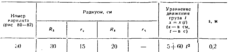Решение задачи К3 Вариант 30 из решебника по теоретической механике Яблонский А.А. 1978 г., на тему: К3 Определение скоростей и ускорении точек твердого тела при поступательном и вращательном движениях (стр. 88).