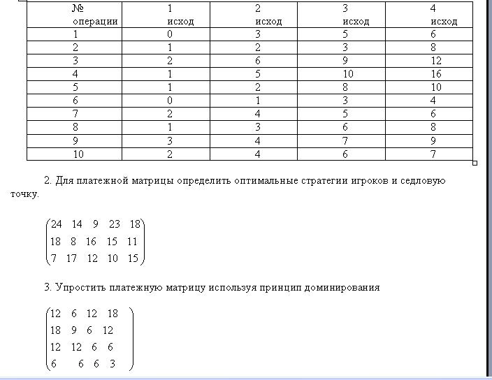 2. Для платежной матрицы определить оптимальные стратегии игроков и седловую точку.