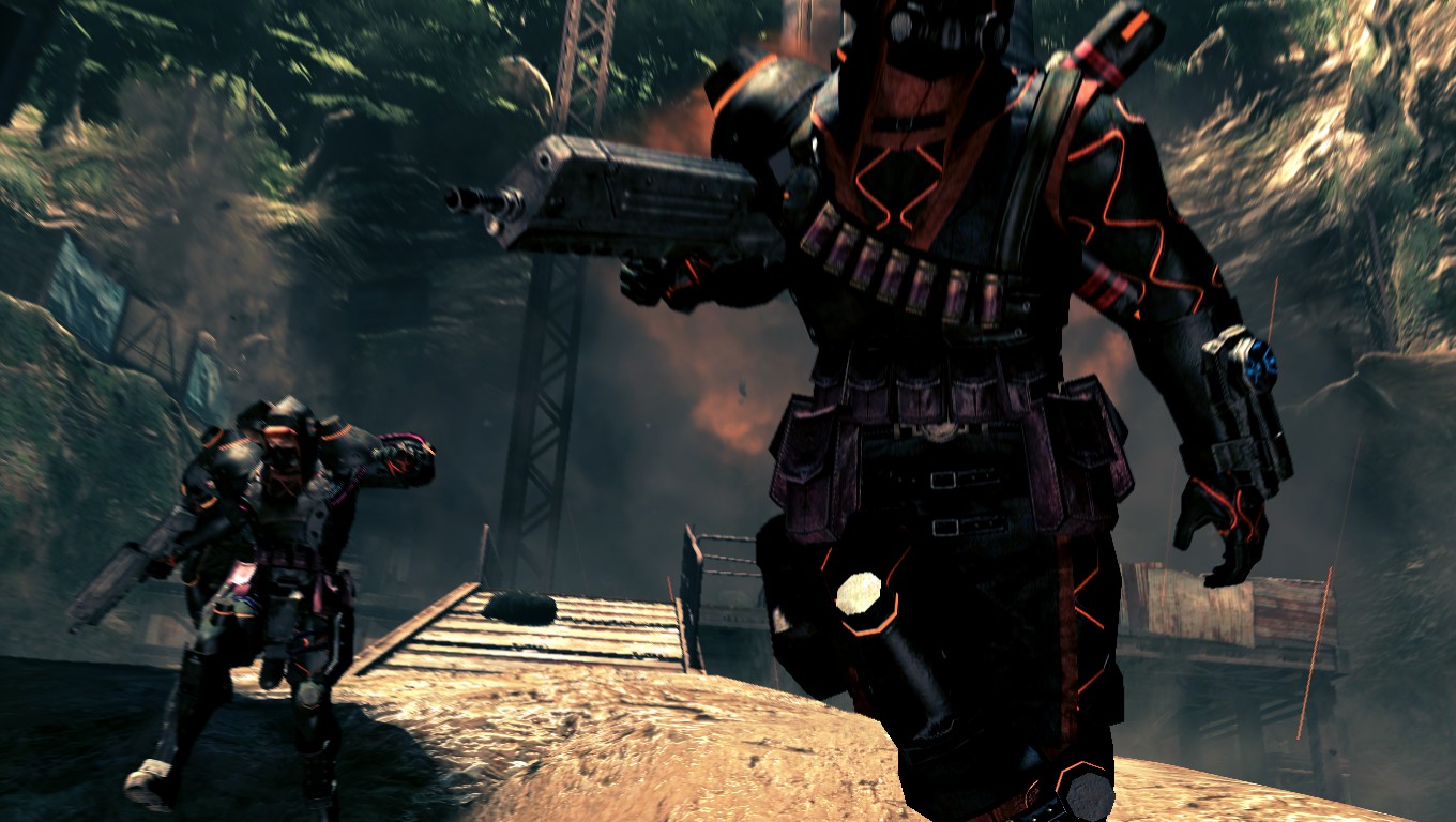 * Быть во всеоружии. Богатый арсенал: автоматы и пулеметы, гранатометы и ракетные установки, плазменные и снайперские винтовки, гранаты и другое снаряжение. Однако главное и самое мощное оружие — Боевые машины: в Lost Planet 2 их стало еще больше.