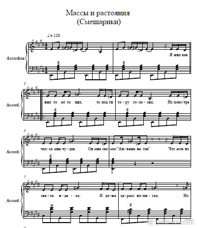 Массы и растояния (м/ф Смешарики) ноты для аккордеона