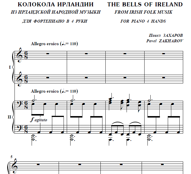 "Колокола Ирландии" (из ирландской народной музыки) для фортепиано в 4 руки,