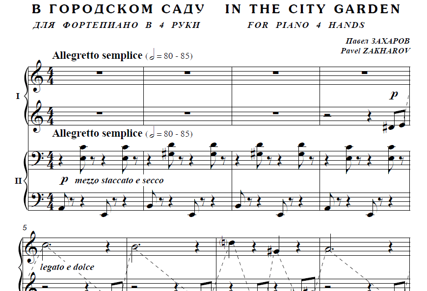 "В Городском саду" для фортепиано в 4 руки, ноты,