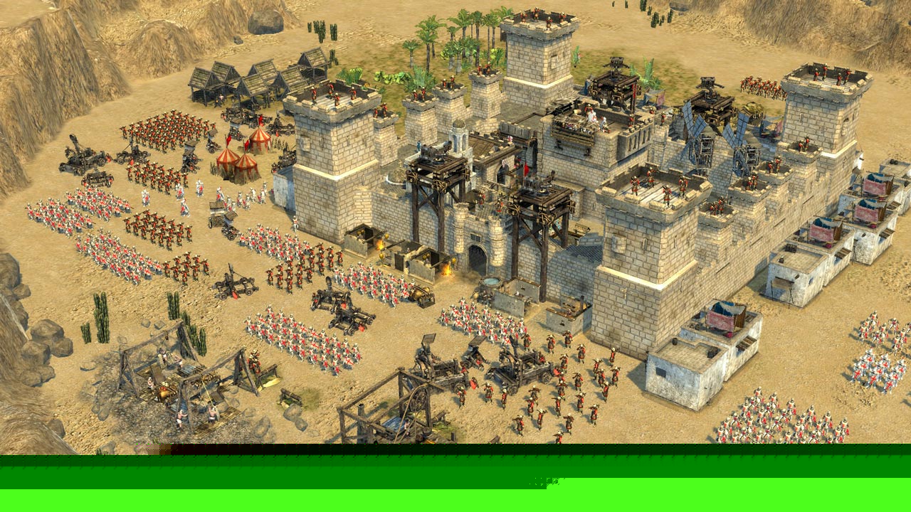 Ожесточённые схватки в нашем новом боевом испытании устанавливают новую планку для игроков Stronghold. Новые персонажи входят в пустыню, преследуя свои корыстные цели. Сумасбродный и эксцентричный Герцог развеет ваши надежды, поскольку традиционные осады не смогут сломить его сложные сегментированные замки с необычной выкладкой стен. В то же время холоднокровное и жестокое сопротивление будет оказано всем, кто осмелится выступить против Тамплиера, нанимающего в свою армию только самых суровых рекрутов-крестоносцев. Девятое боевое испытание потребует от игроков новый набор стратегий. Вам придётся защищать ваших союзников, отбиваться от налётов бандитов и следить за настоящими соперниками, чтобы в конце концов пробиться на вершину горы и завершить нашу самую сложную финальную миссию из когда-либо существовавших.